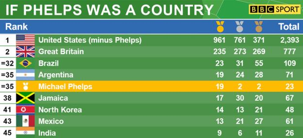 This is not to diminish Phelps achievements in any way, just saying swimmers have by far the most opportunities to win medals.
