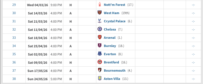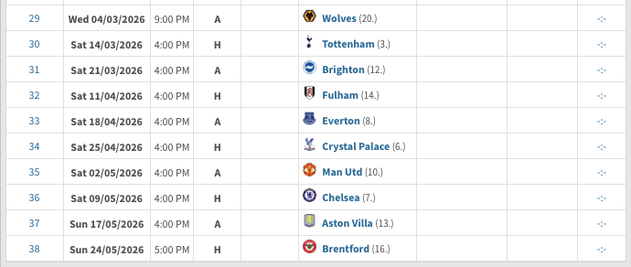 Also as it stands, Liverpool and Arsenal have 4 teams to play who are currently in the top 10, whilst City has 6 teams to play in the top 10. No doubt the outlook will be very different come March.