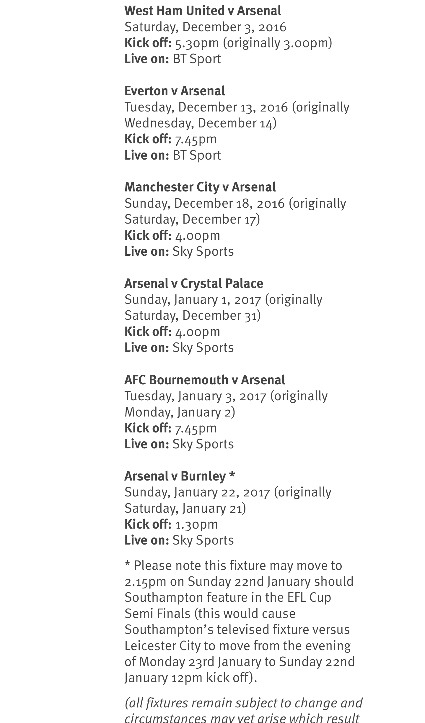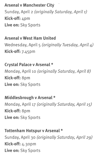 This thread is to post the Arsenal matches Sky Sports and BT Sport pick throughout the PL season. Games are usually announced in a month or two month batch. August & September were announced this morning: