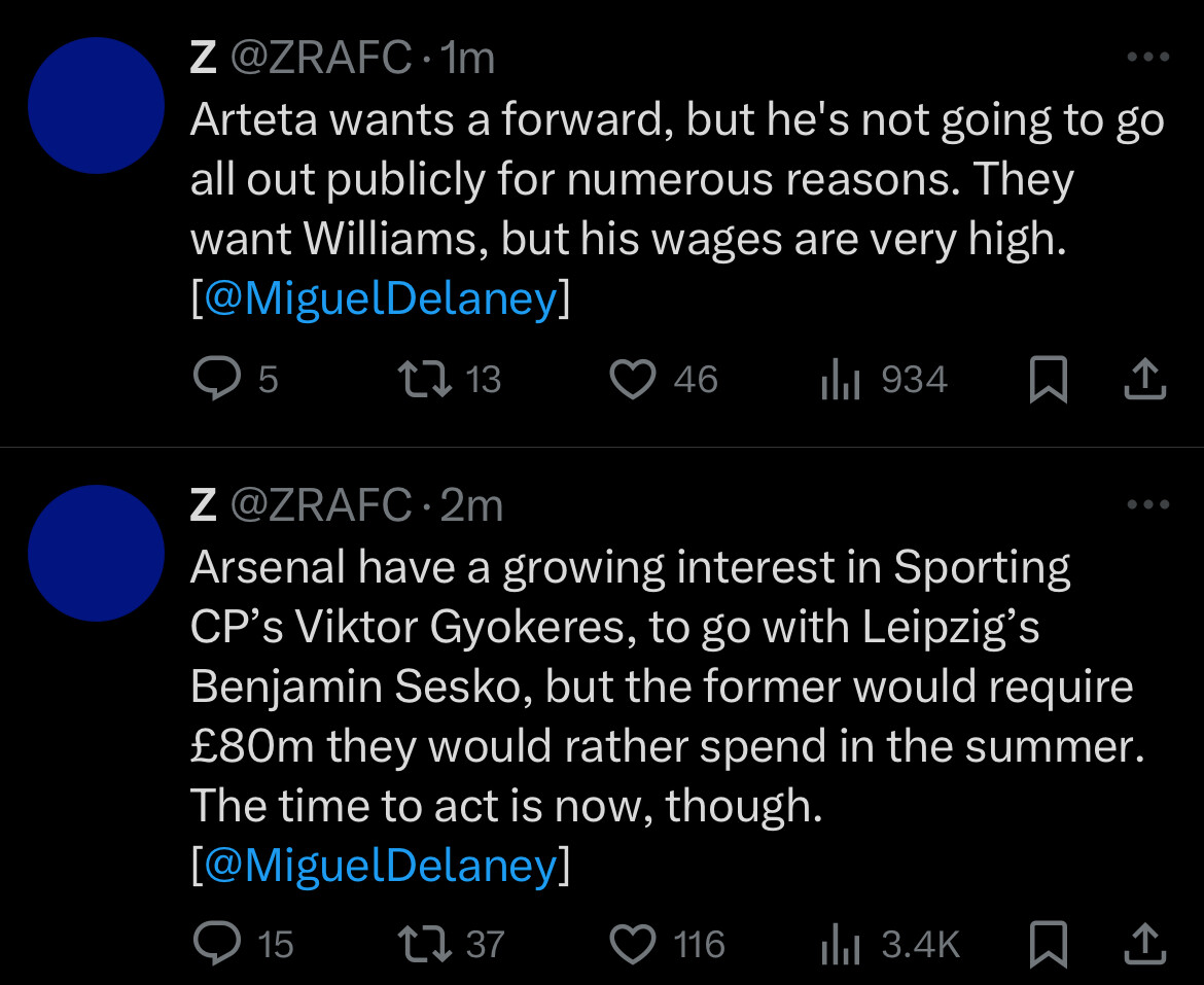 I know we arenāt getting him and it is frustrating but we have to trust Mikel has a plan. He better cause if he doesnāt get it right this Summer, he will start to feel the pressure from certain sections of fans.