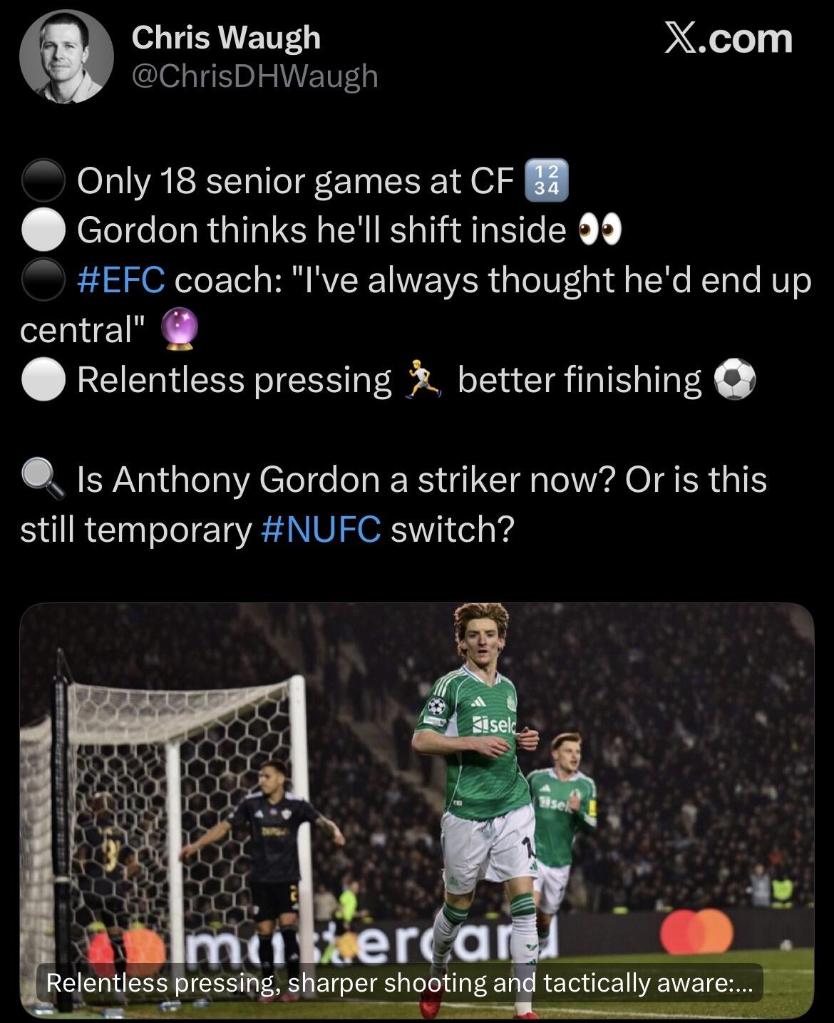 I rate Gordon but heād be a disgusting addition. Madueke and Gordon on the wing some games with big Vik upfront. Are we Spurs?