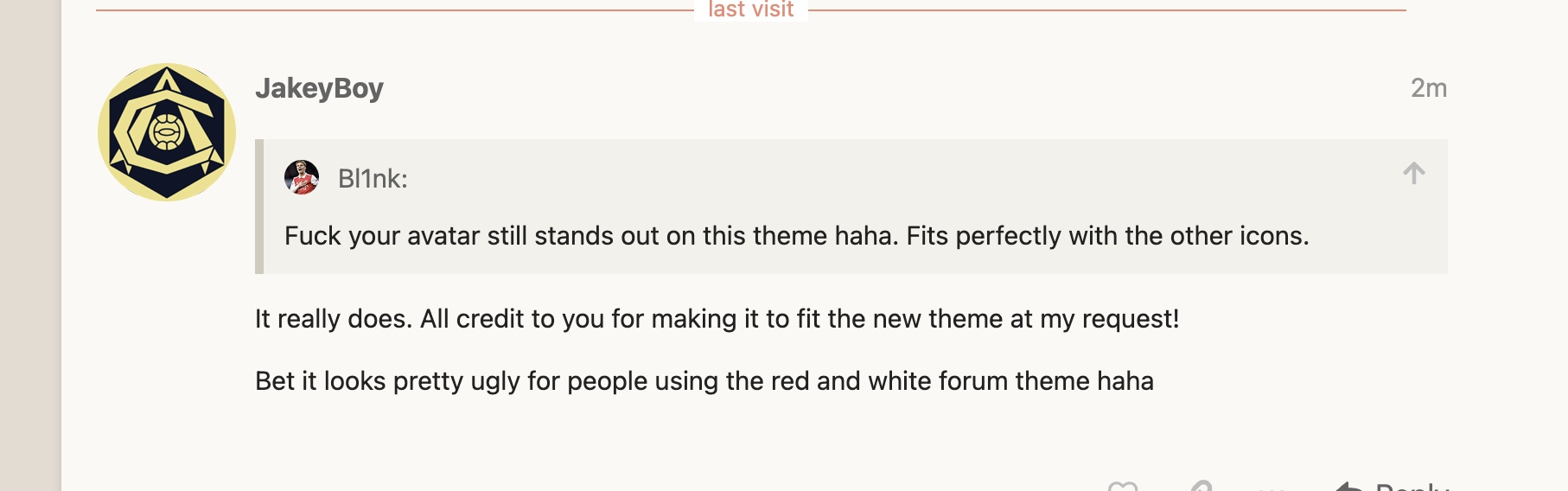 Bet it looks pretty ugly for people using the red and white forum theme haha