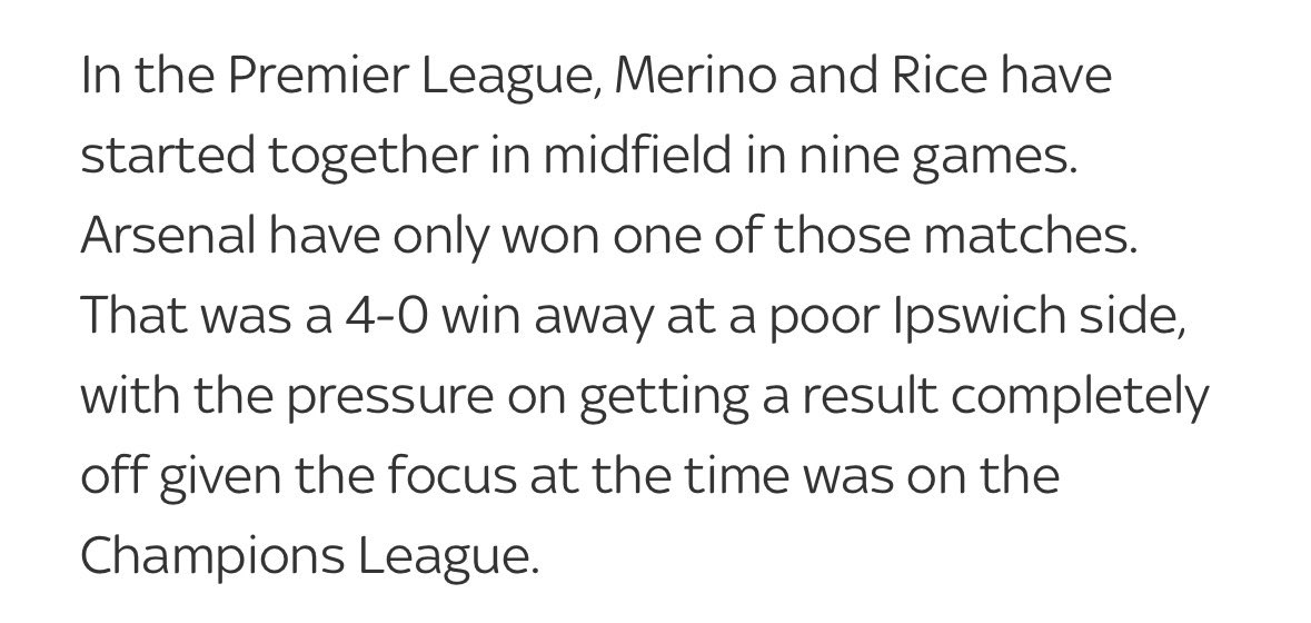 I hate seeing him and rice in midfield together too, I’m probably one of the last people on here to defend merino but at the moment it’s the move that makes sense. He will not be the reason we don’t win.