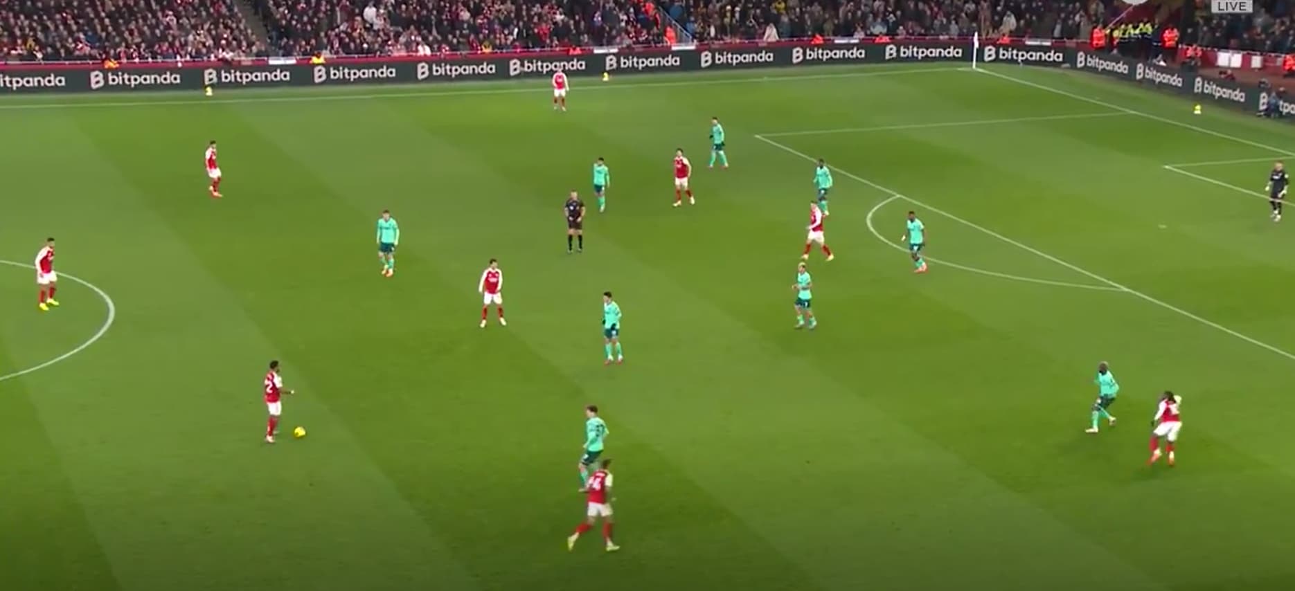 I’ve said this before about Saliba and Gabriel, but to break down a block like this, you have to provoke movement, A slight moment of disorganisation. The centre-backs therefore need to be a bit more proactive.