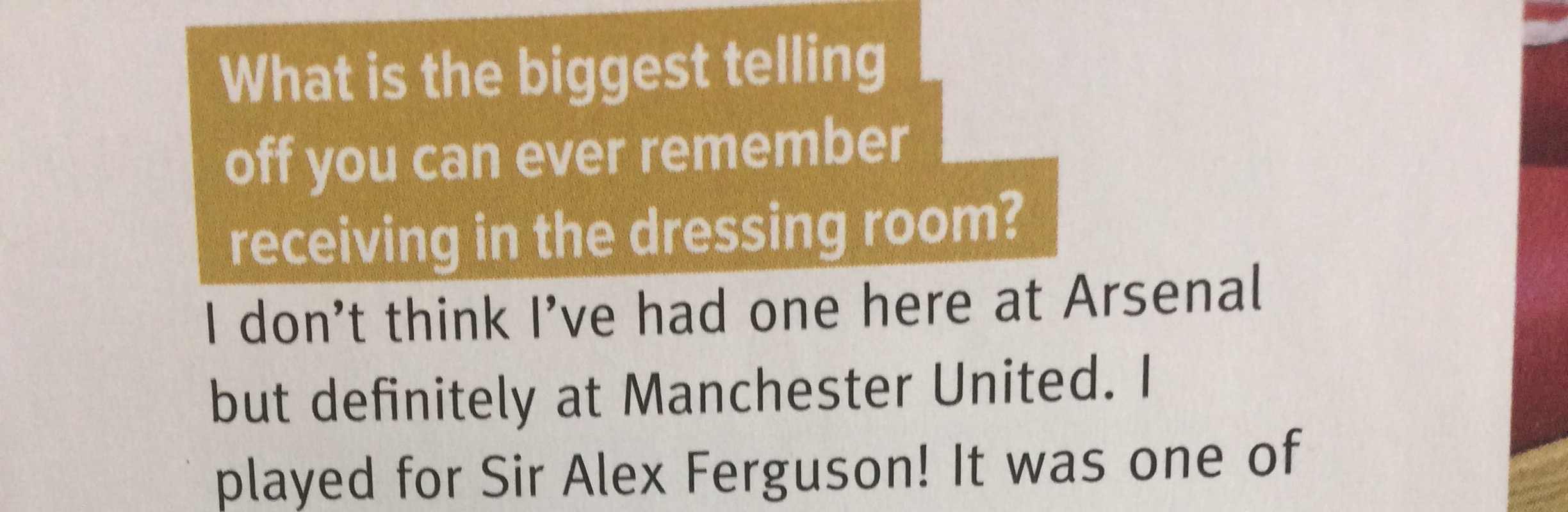 So I’ve just been reading this interview with Danny Welbeck - one question stood out for me as it highlights the different managerial styles between Wenger and Fergie and cements the view of there being a culture of comfort at Arsenal. There is no rollicking if you perform like a headless chicken. Wenger needs to be more like Fergie!