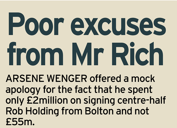 Stadium situation squared away, some top talent like Ozil, Sanchez…and he chooses for reasons only known to him to not strengthen and go for a title and even if the team came up short, he can say he went for one last title.