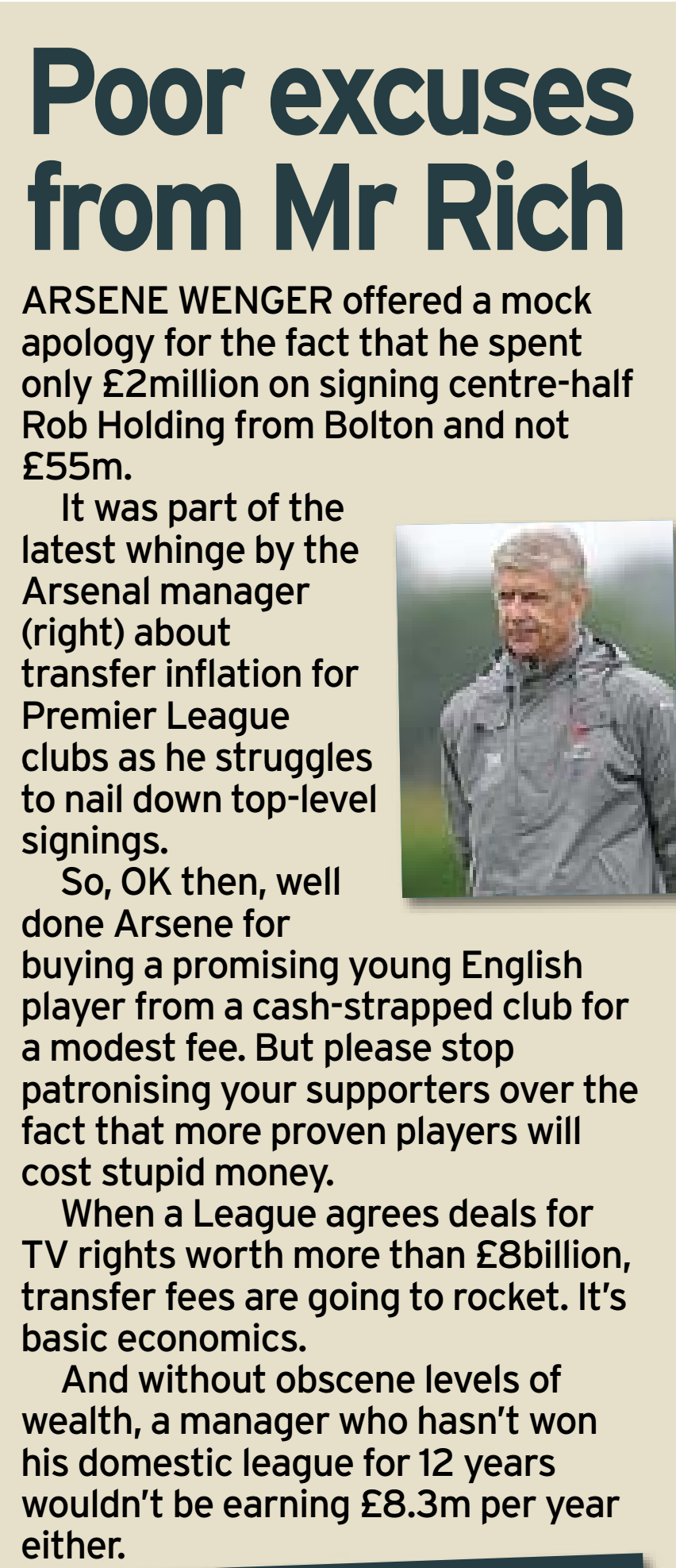 If he had kept his mouth shut and stopped lying, then at least the supporters would know he is the tightest manager in Europe without him trying to pretend he isn’t.