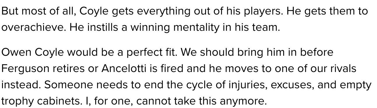 I remember when people wanted to replace Wenger with Owen Coyle…oh how we laugh at it now.