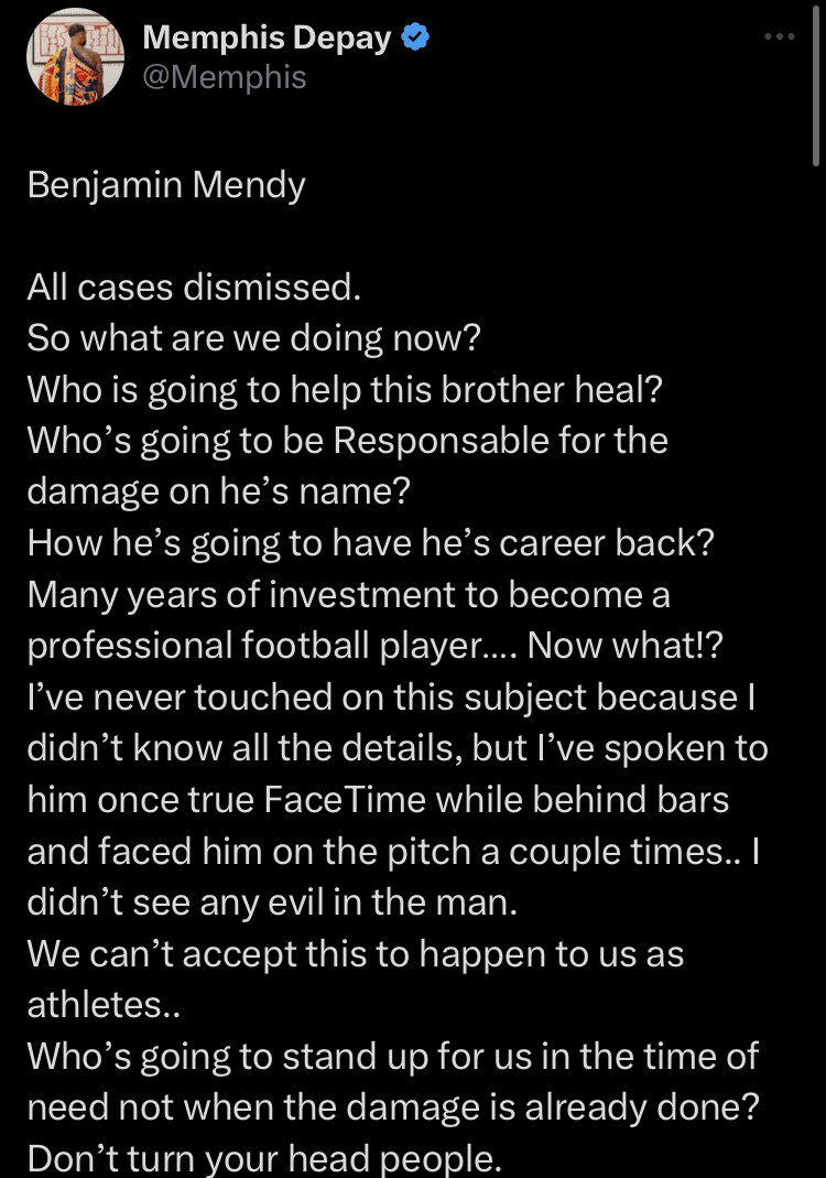 Mendy got off. The women gave inconsistent accounts. His legal counsel ate the prosecution alive and the jury found him not guilty on 10 counts.