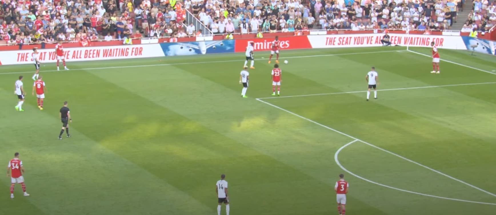 If it’s Saliba under that ball, he caresses it and brings that ball out of defence with ease. Gabriel isn’t as technically proficient as Saliba and often struggles with his first touch. Such a mistake is not a surprise. That’s why you don’t put him in such a position. A floated aerial ball across your box is inviting an error. Once he sees from the corner of his eye that Mitrovic is sprinting at him after the pony first touch, he mucks up the second.