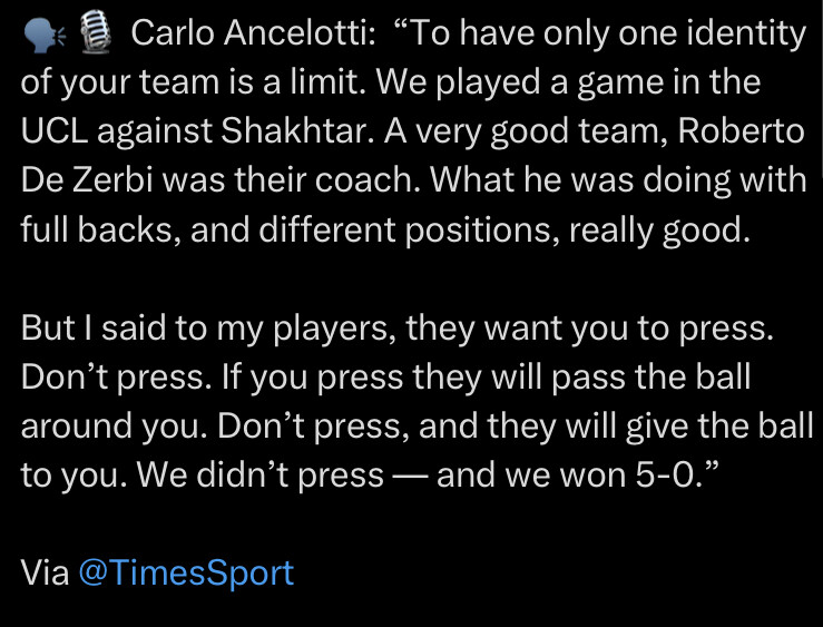 But Real Madrid will look at that and say Ancelotti is the problem and not the way they’ve been squad building.