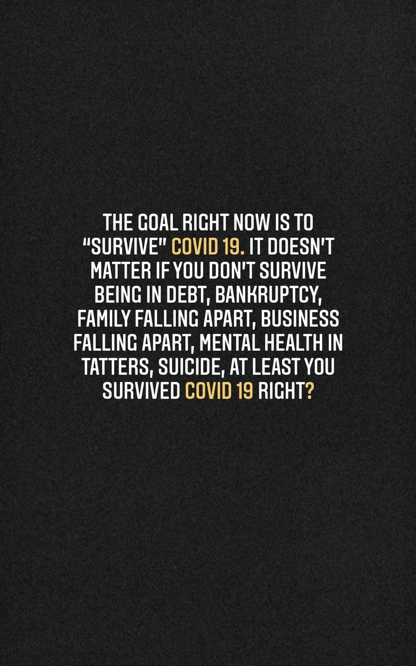 What are peoples thoughts? I’m largely in agreement with him. Peoples mental health isn’t being protected right now and a lot of people’s livelihoods are being destroyed with minimal government support.
