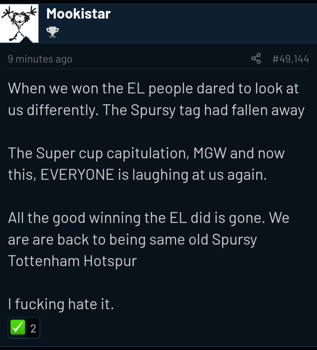 soooooo spurs how is that europa league treating you. I was hearing ‘there are levels’ targets would see them in a different light.