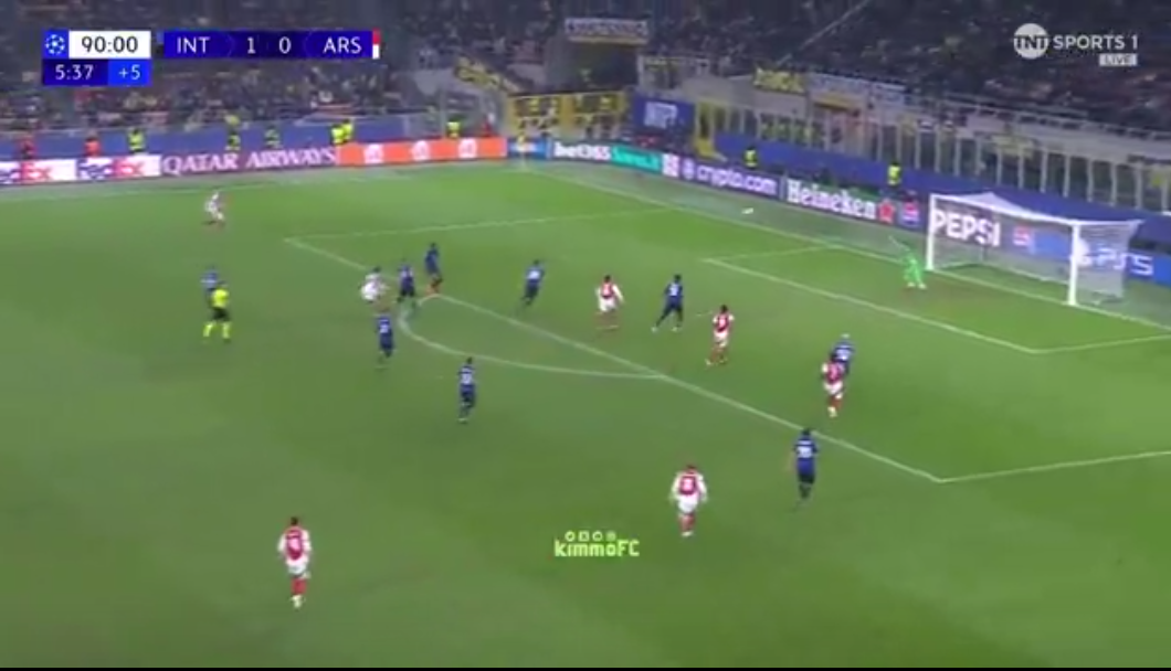 By the time Bisseck loses Jesus, there’s an Inter player between Nwaneri and where the pass would need to go. Wasn’t a glaring opportunity missed tbh, very difficult ball to pull off there