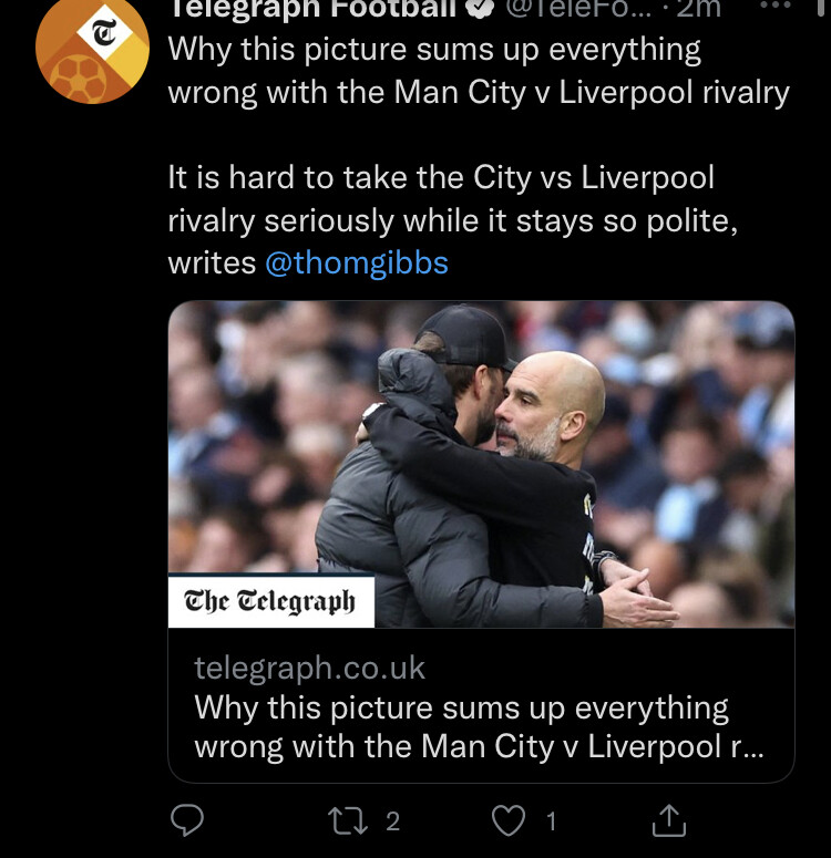 Yes there is a high standard setting bar which Man City and Liverpool have created on this era. But I donât know their rivalry feels soulless to me?