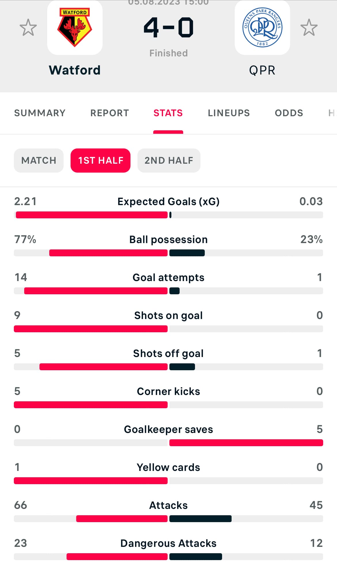 This first half from QPR is pathetic. I know nobody was expecting much from them this season, but still. Absolutely no way Ainsworth is surviving long there.