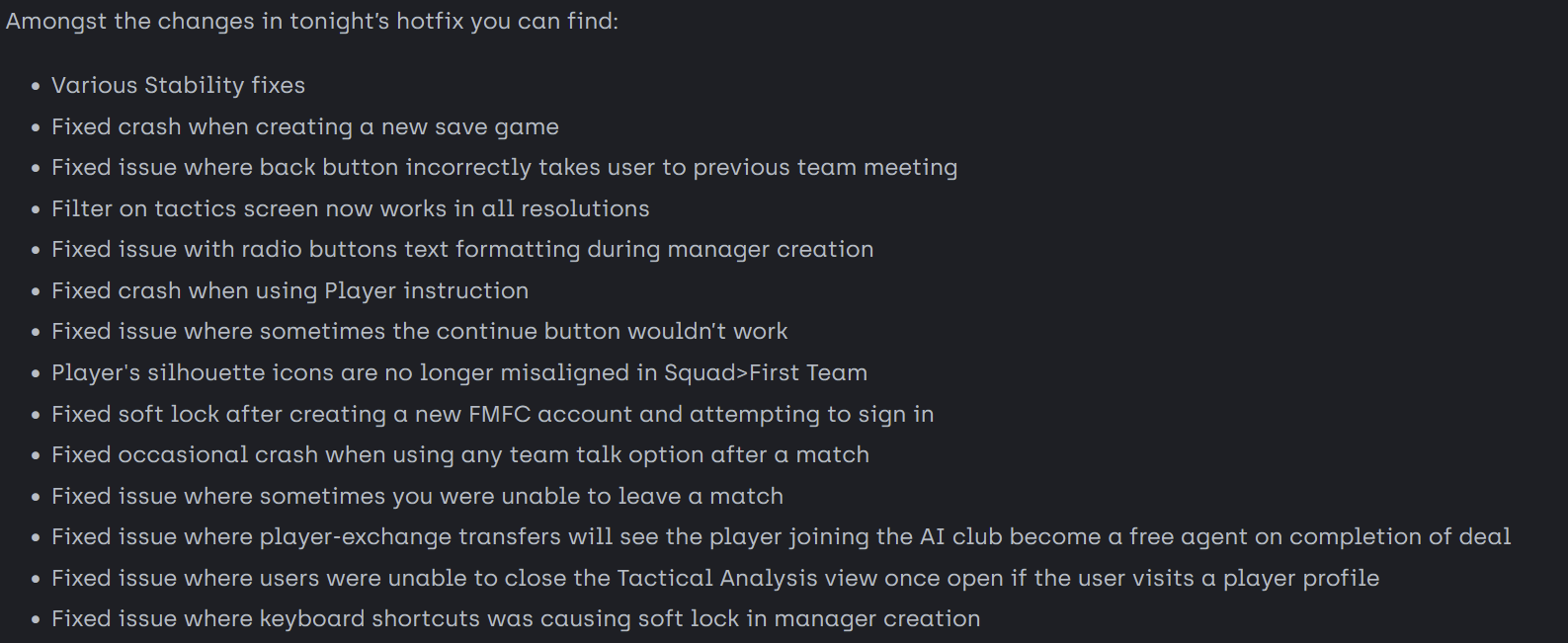 I’m wondering if we’re going to break the record of pre-release fixes. I think it was 3 in FM 19.