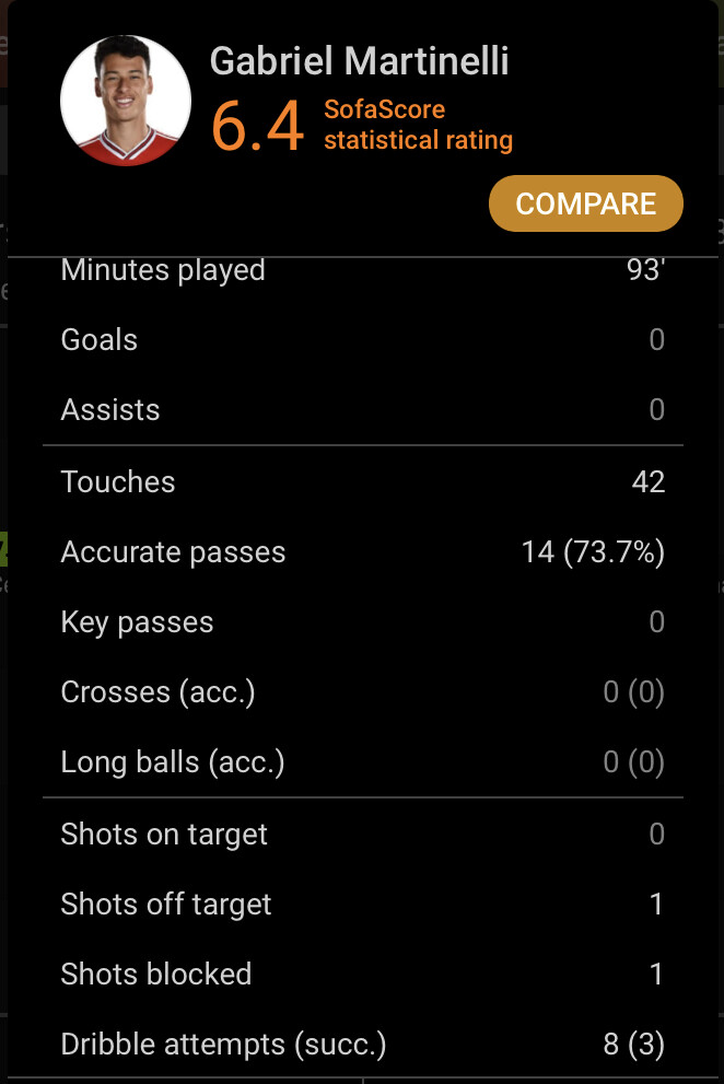 Sterling played his best football when Arteta was at City and he played almost exclusively on the RW and all he was really asked to do was provide width, look to run behind the defense to put in some nice crosses and pullbacks, and then come inside to get on the end of things at the back post if the ball was on the other side of the pitch. I wonder whether Martinelli could do a low-rent Sterling impersonation if given a run over there.