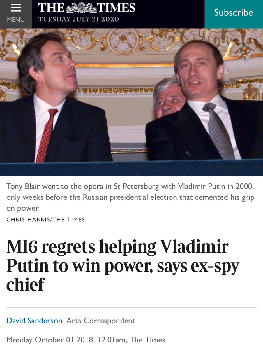 the irony in all this Russia shit. MI6 helped Putin come to power in Russia in 2000.