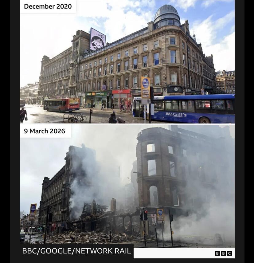 Vape shop caught fire in Glasgow taking out building near Central station what a mess.