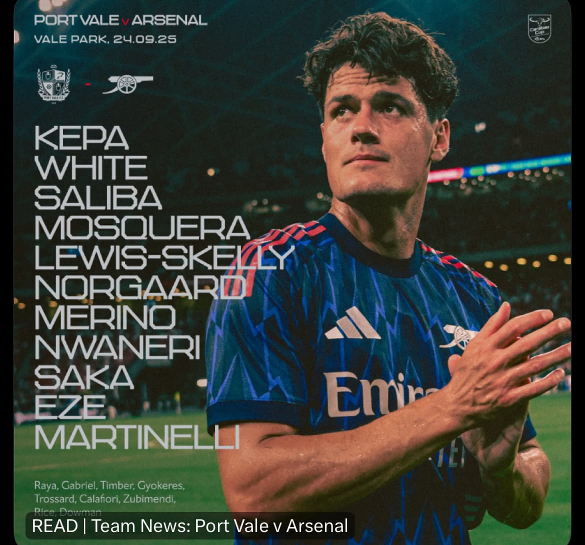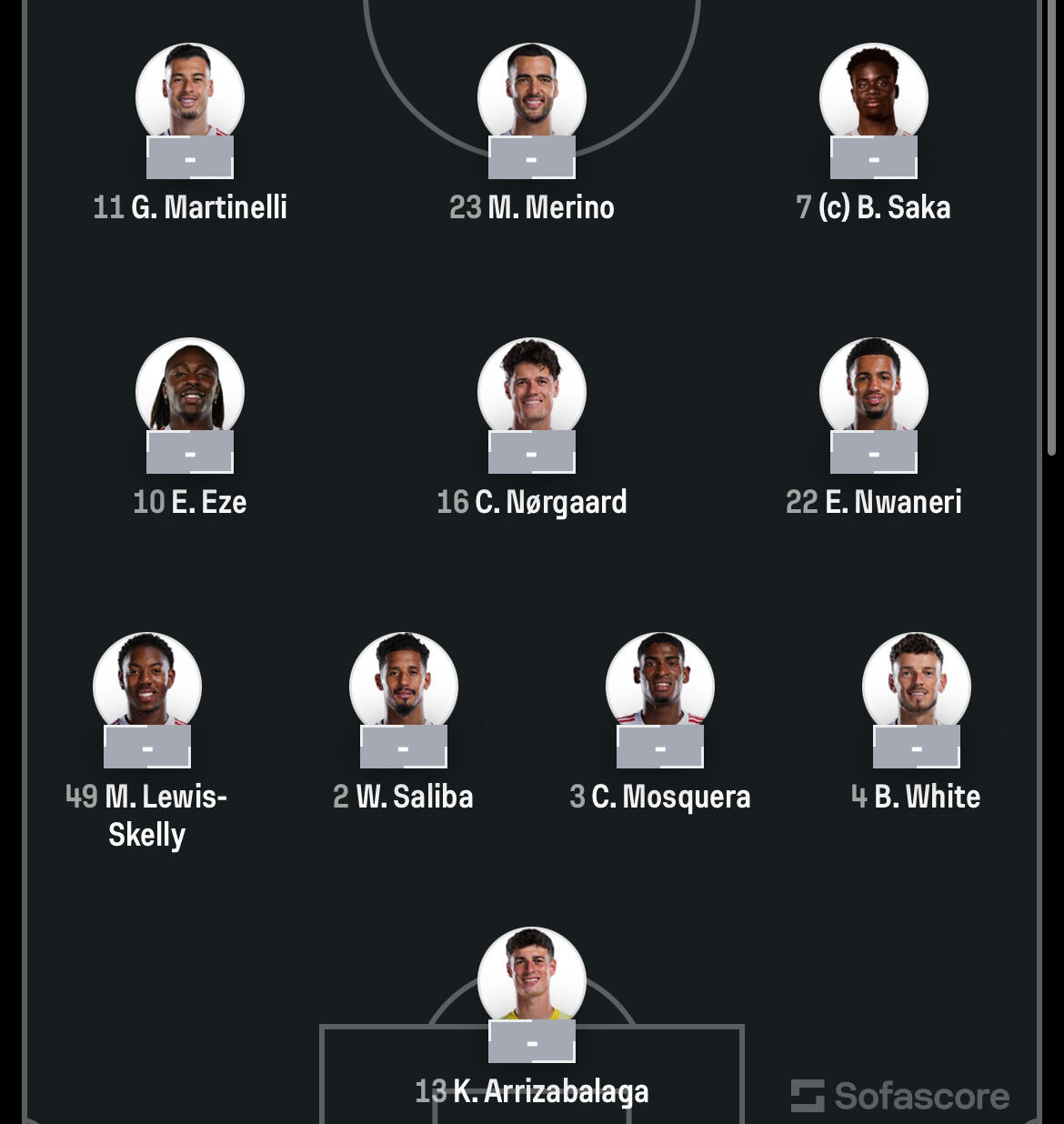 Could’ve brought on Saka for the last 25 minutes to give him match fitness. Nah, Mikel is just afraid we might suffer an upset is all. Should’ve started Dowman imo. Apart from that, lineup pretty much as expected.