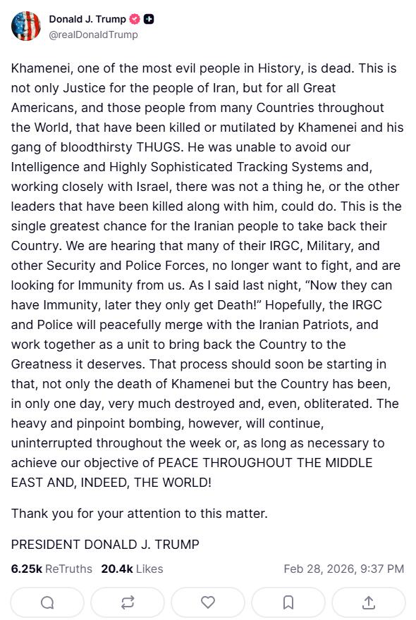 I didn’t take it that way either because I took his entire post, and others, into context. I know he doesn’t approve of the US/Israeli attack on Iran.