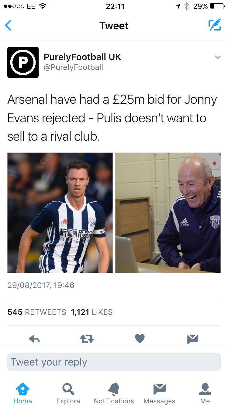 I wouldn’t grumble at the transfer but we could and should be getting better than Jonny Evans.