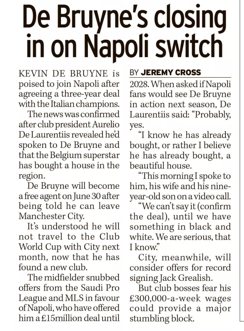 Brilliant player. I really like the idea of him moving to Napoli. After seeing what ex Premier League players have done over there, KDB would be amazing.