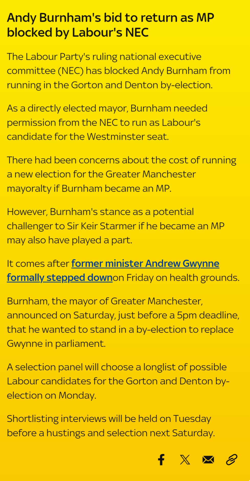Blocked from standing in the by election. I’ve no real sympathy for him but that is pure weakness projected by Labour.