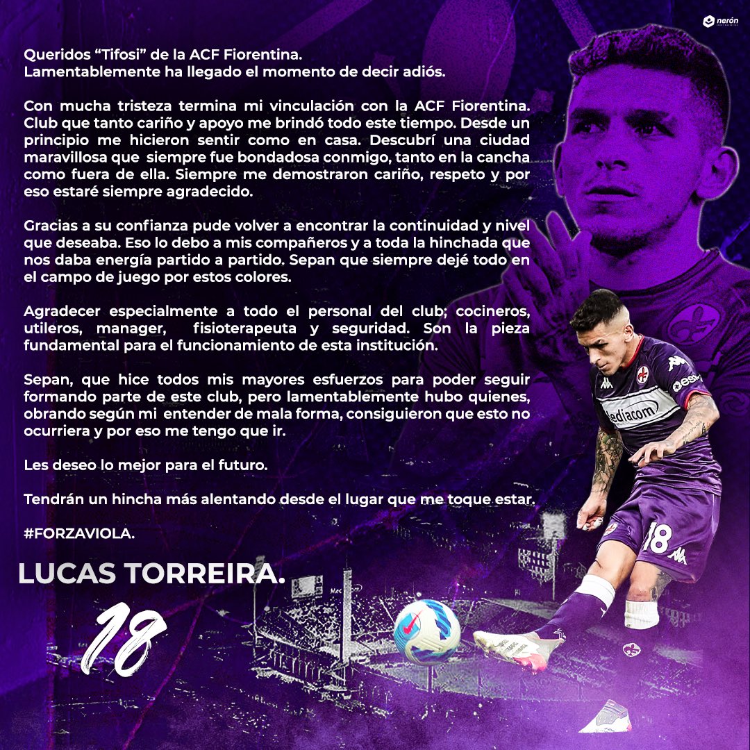 yeah, thank you, I love fiore, thank you all, bla, bla, bla… “unfortunately there were those who, acting in a bad way according to my understanding, managed to prevent this from happening and that is why I have to leave.”