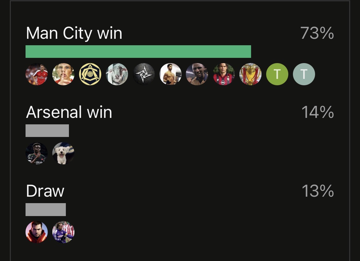 Low confidence in team and manager. Just want to protect the tiny goal difference lead that we have. 3-1 City.