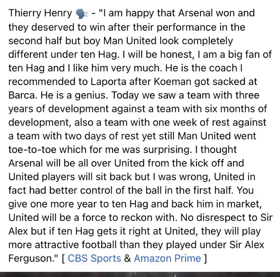 However, Henry is absolutely right Ten Hag is a “genius”. His Ajax tenure is simply great work which not many if any other then a Pep could have achieved. This and how quickly he turned things around for United after taking over an absolute shambles of a disjointed team post-Ole and Ragnick. Legends like Henry can see quality when it is in front of them.