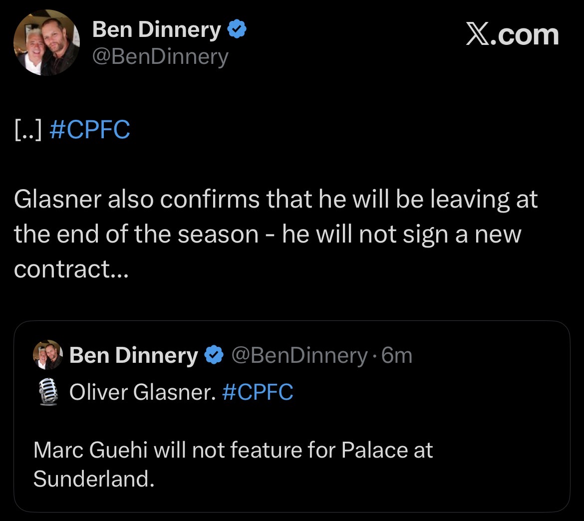 Glasner announces he will leave Palace at the end of season. Can’t be happy with the Guehi sale mid season.