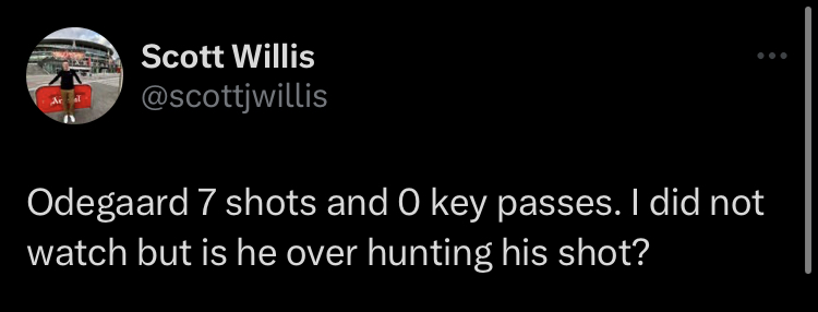 A lot of people are starting to notice that Odegaard is now more of a shooter rather than someone who looks for the final pass