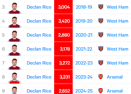 I forgot, the wear and tear at a better club is more than a weaker club. We had a small squad to start with and then significant injuries all season.