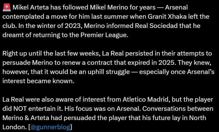 IF he wants to come back to EPL and Arsenal is the only club going for him, it makes sense that Merino did not entertain Atletico (and/or Barca) at all.