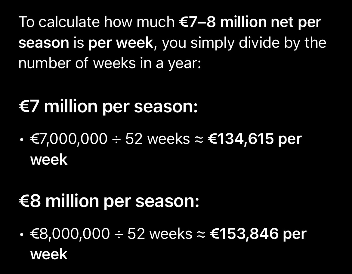 upper tax rate is 47%, so he will be on near enough 300k a week gross