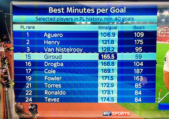 Hate these Sky Sports graphs tbh, all they do is mislead. The only thing you can really glean from that graph is the massive gap between Agüero and Giroud.