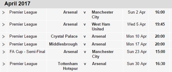 The April Fixture list would only really bother me if we were still in the Title race, currently I’m not overly fussed. Makes no difference if we finish 5th or 7th.