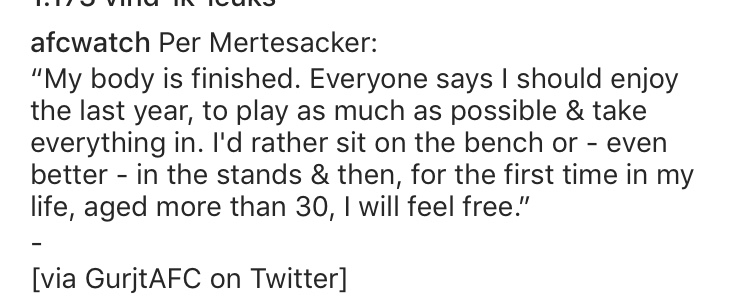 Btw, I love Mertesacker, and think he could be a fine academy head after 4-5 years experience working in the sport (different than playing in it). But really not sure how heās landed what I thought wasālike I said, hoping this is the part where Iām missing somethingāsuch an important job at a top club with zero experience nor would it seem like very realistic ideas for helping the club (note: not societyā¦top level football clubās donāt have the luxury to put society above their necessity to compete).