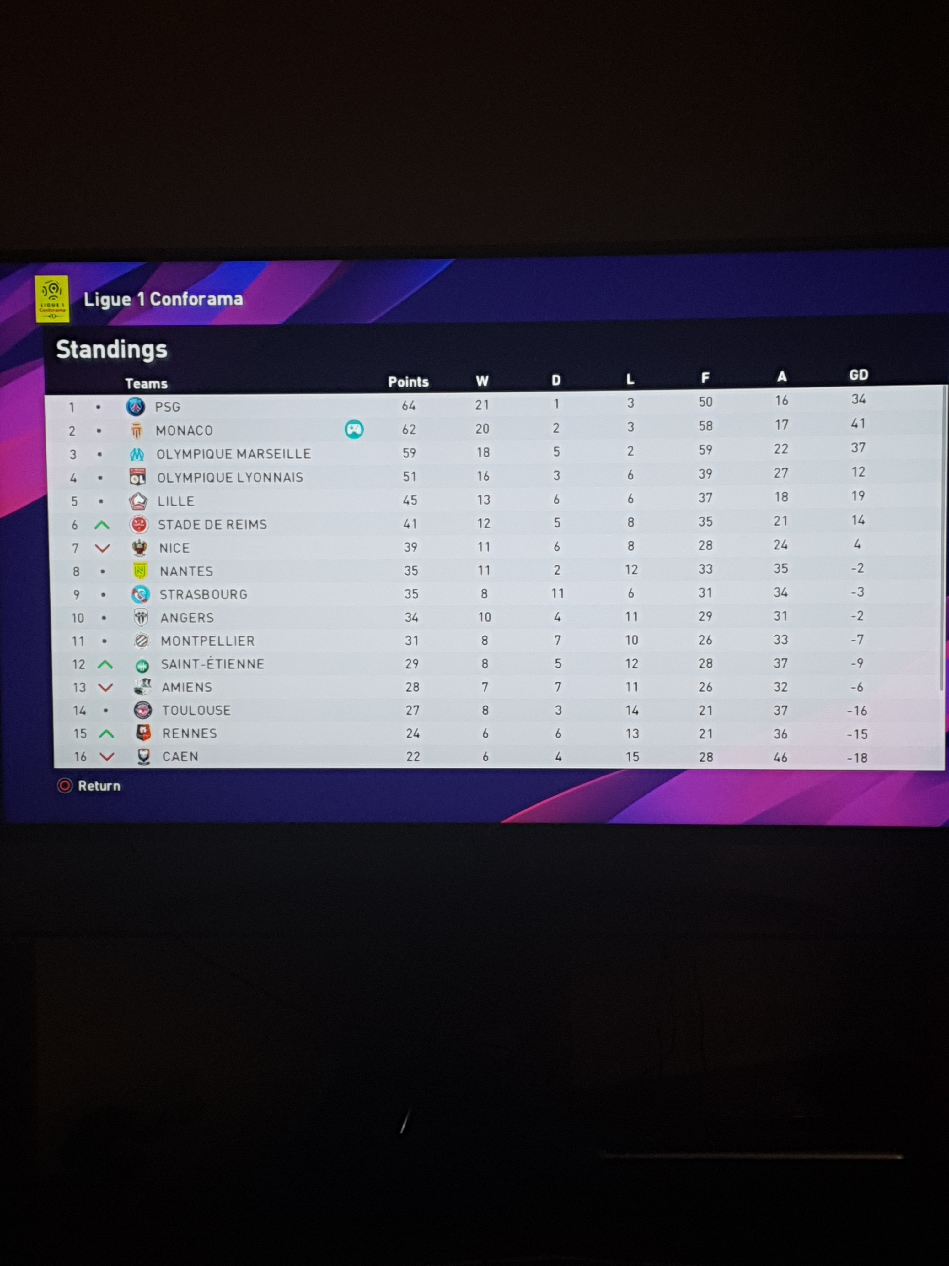 I was top from the first game till January where I had a loss and two draws and PSG overtook me finally.