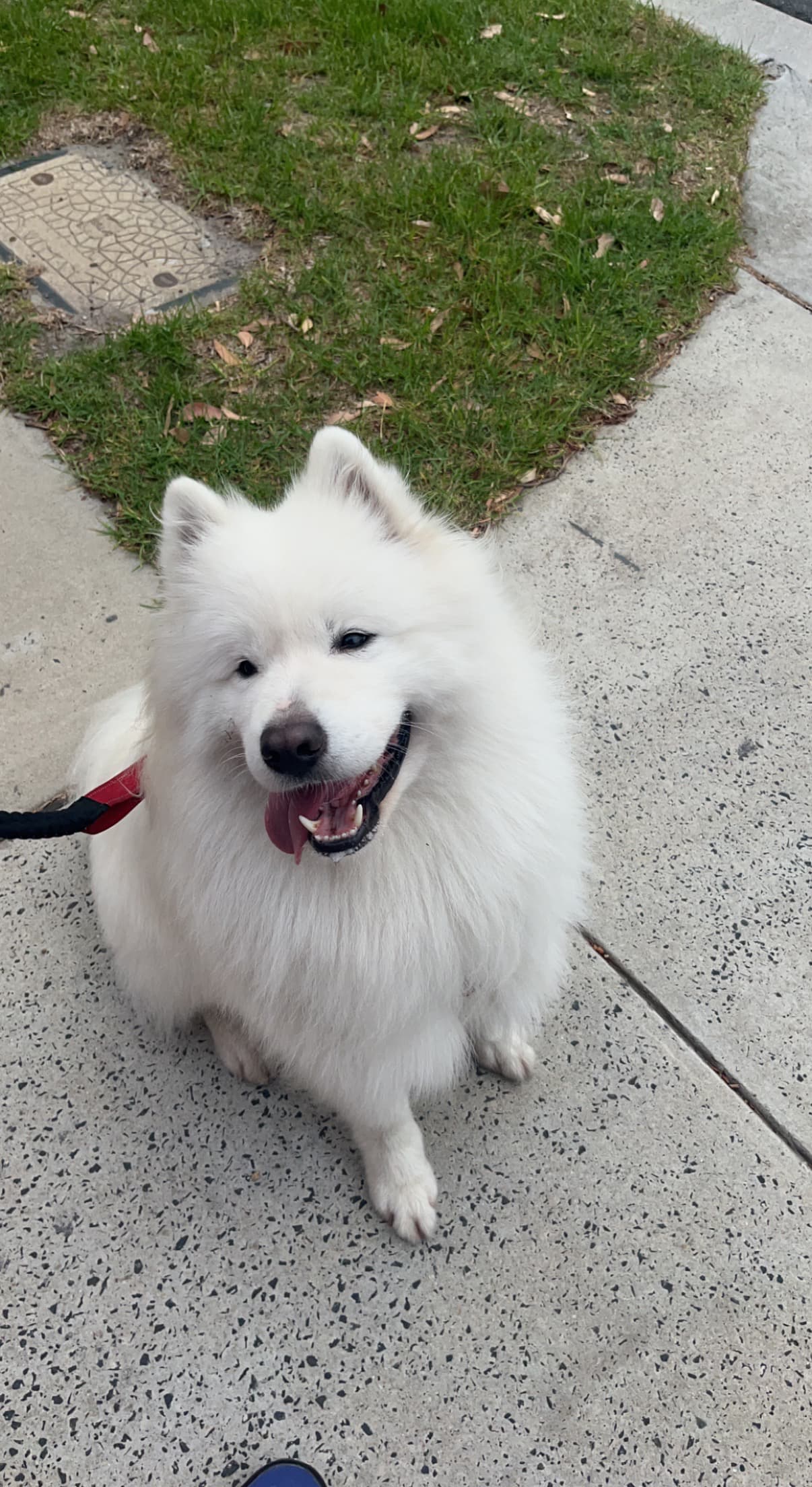 Sunday morning walk before I go to the footy. 30 odd KG @SRCJJ so only just over half the size your pup will be.