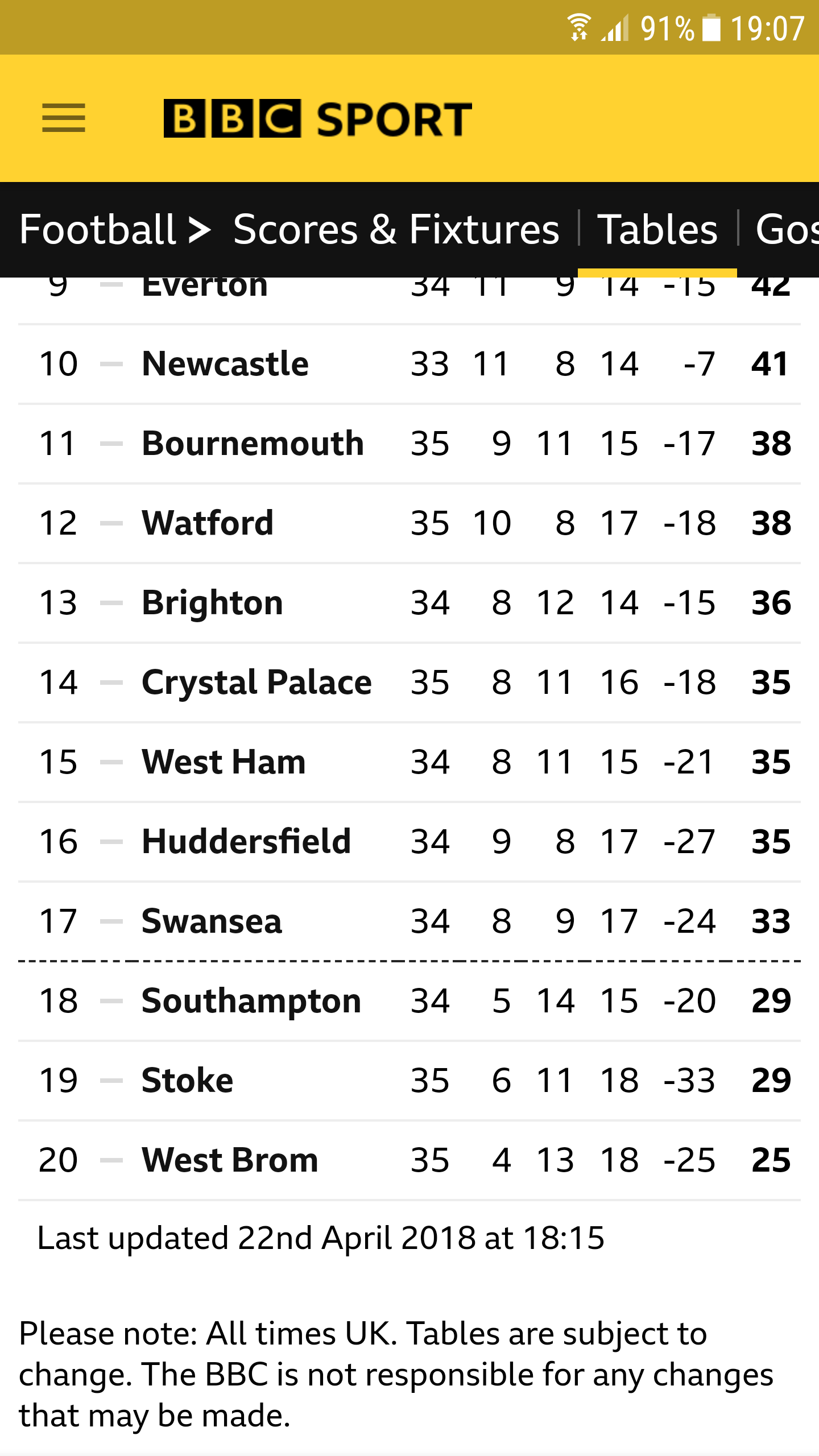 I wonder why they are in the relegation places.
