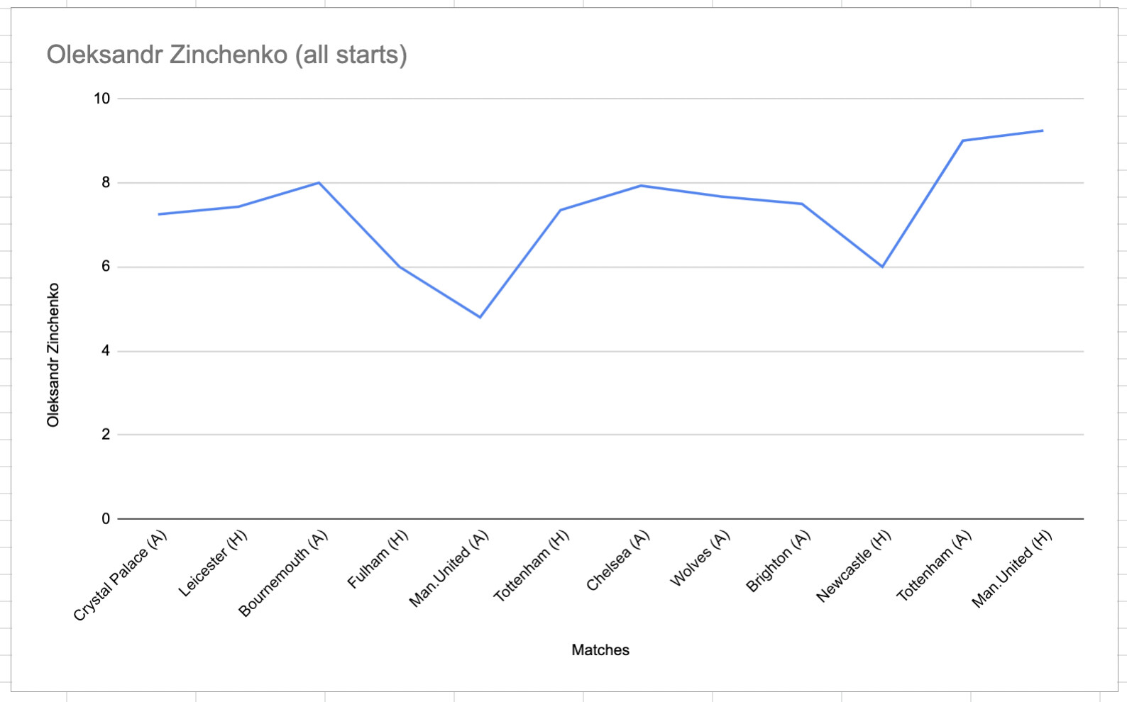 Zinchenko has surprisingly very few starts. Clearly growing in the role.