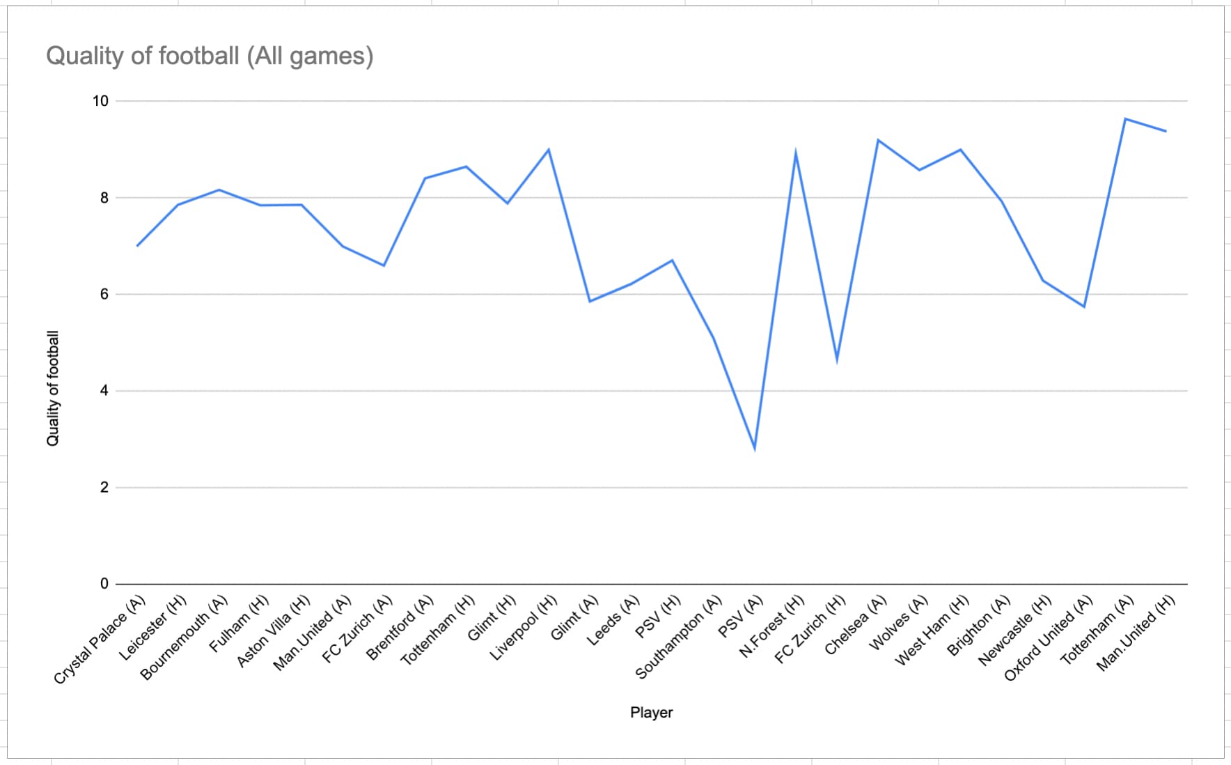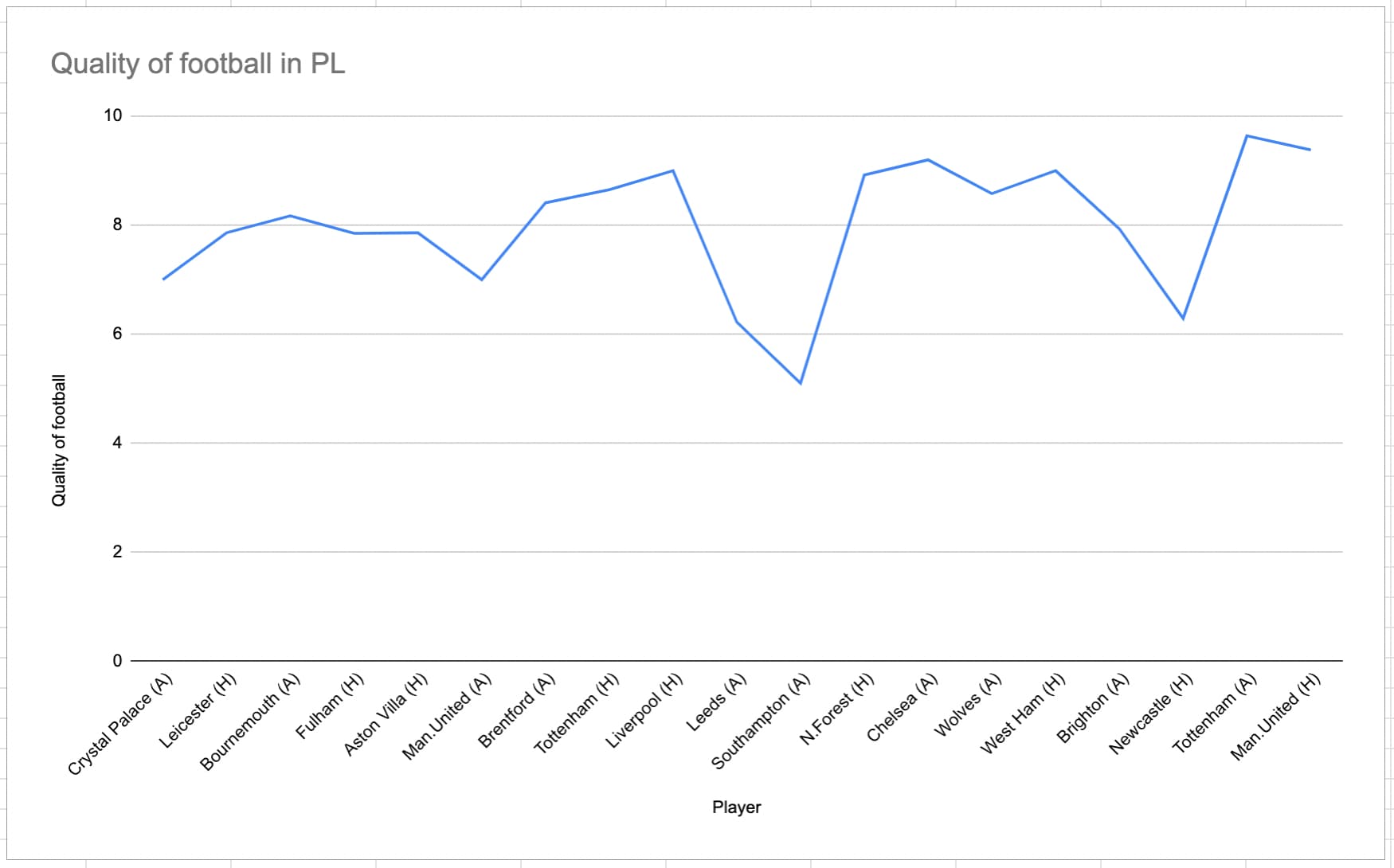 Quality of football (PL)