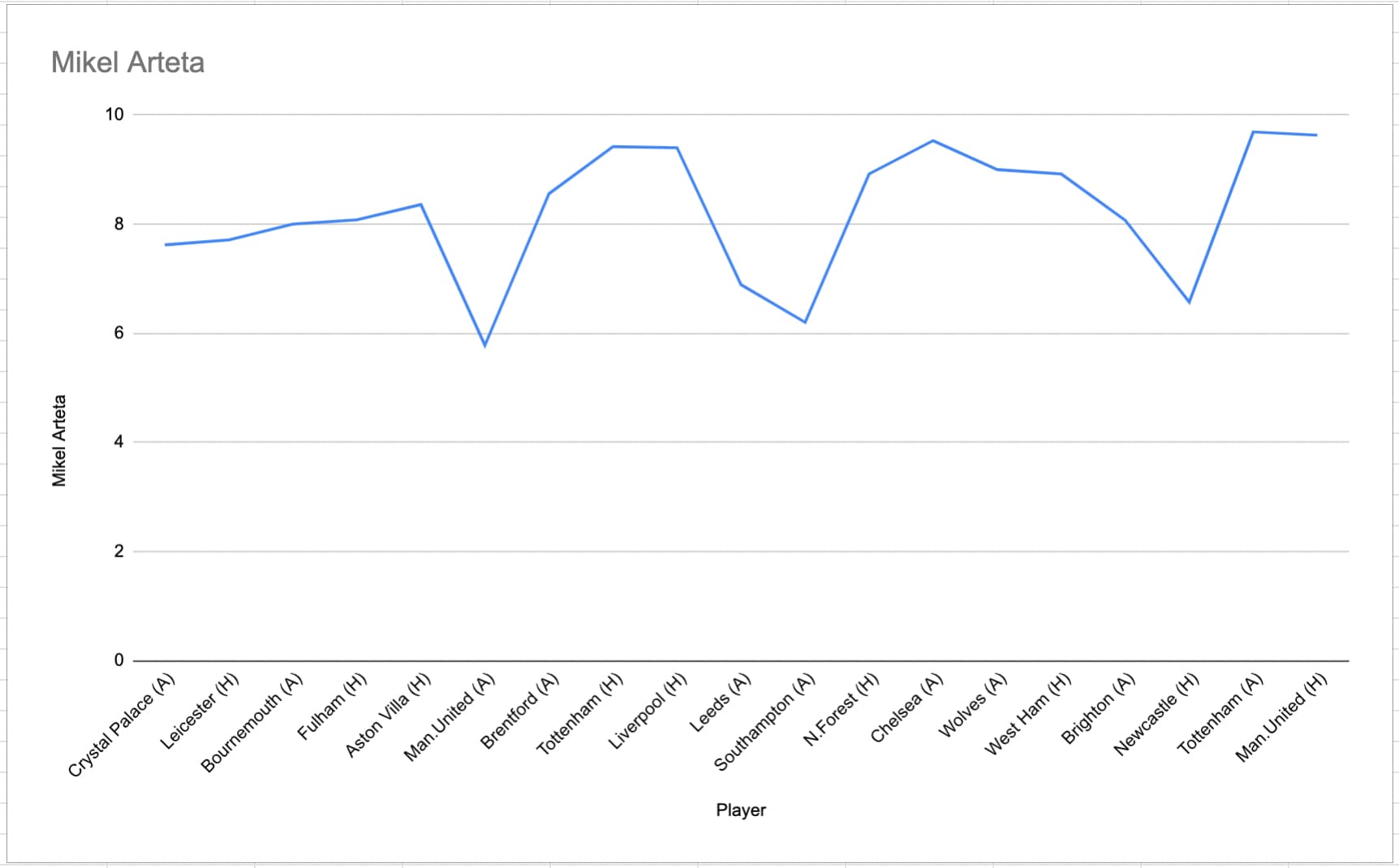 Mikel Arteta’s Performance (PL)