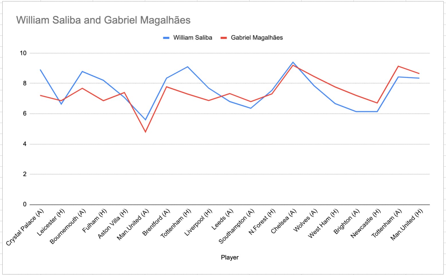 Hardly anything between them. It does look like we either under-rated Gabriel early in the season or Saliba got some new signing brownie points.
