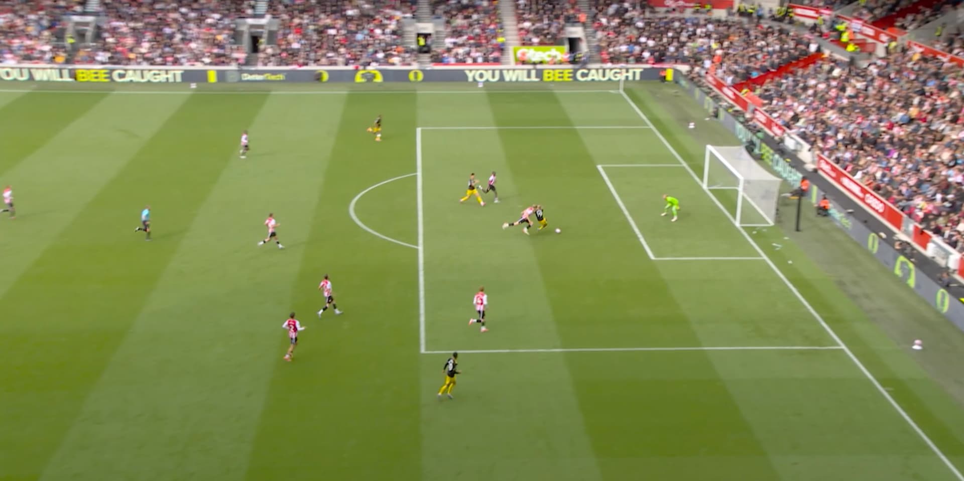 Just realized Collins weren’t sent off here, because according to VAR, Mbuemo wasn’t in control of the ball here.