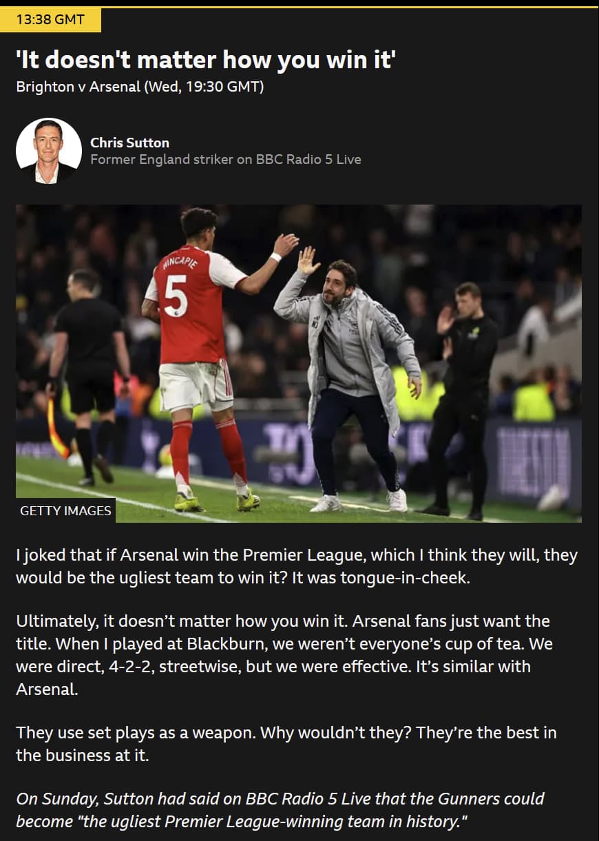 The media aren’t obsessed with how we celebrate. It’s only a select few, like Sutton, who just really enjoy winding up Arsenal fans.