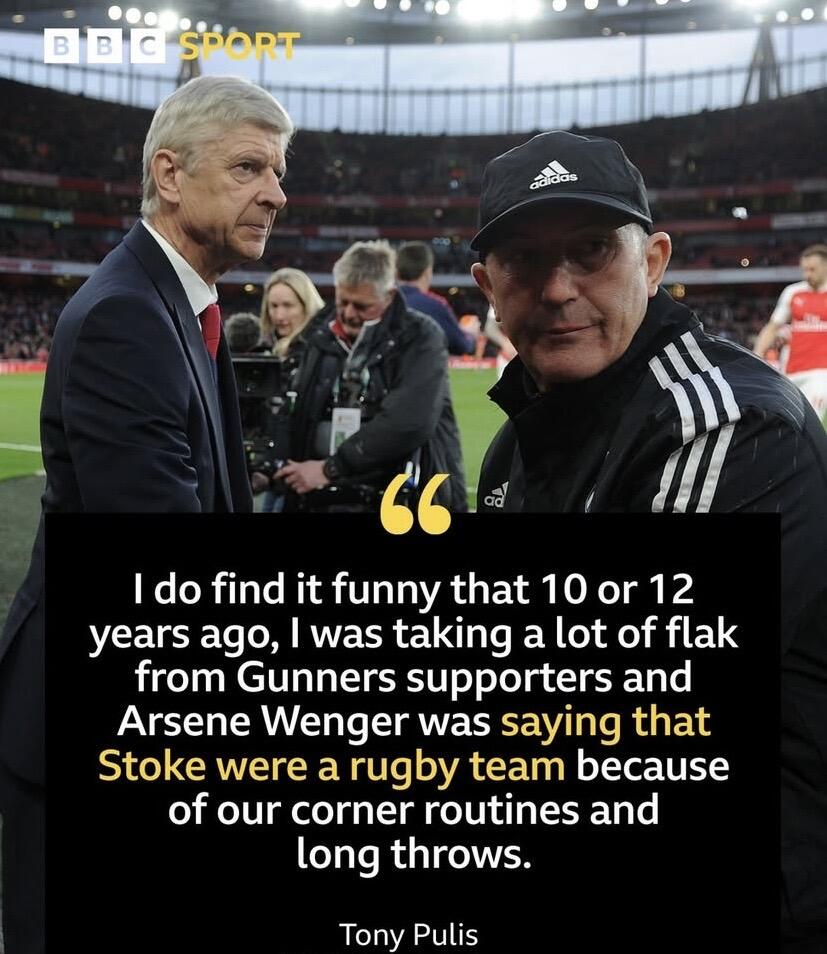 "[Former Arsenal captain] Patrick Vieira told me: ‘We used to hate going to Stoke. You were the only club that Wenger actually talked about and worked on before. We just couldn’t beat you.’
